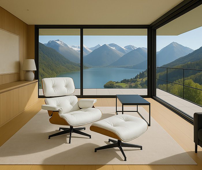 Eames Inspired Lounge Chair in Rosewood and White | Black Base