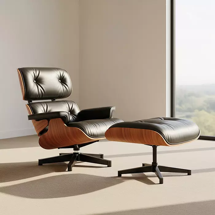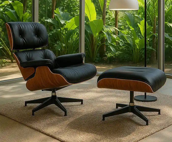 Eames Inspired Lounge Chair in Rosewood and Black | Chrome Base