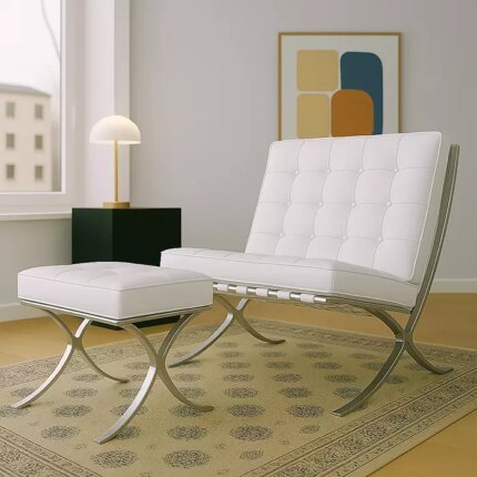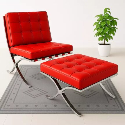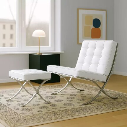 Mies Barcelona Chair with Footstool | Chocolate Brown